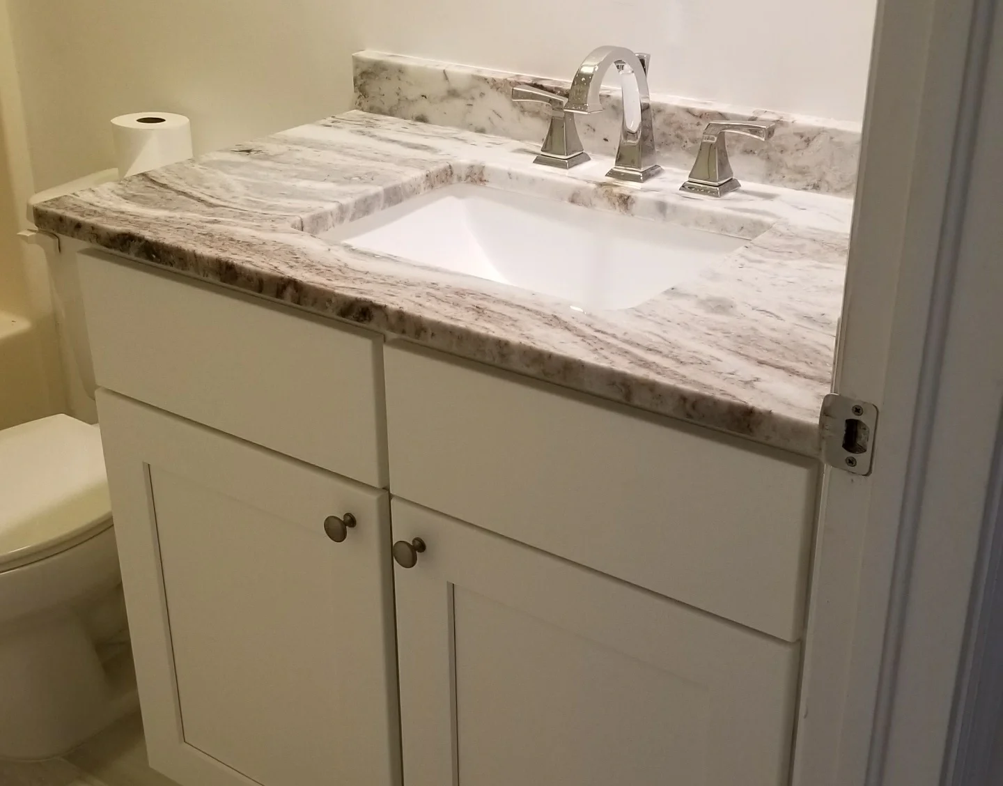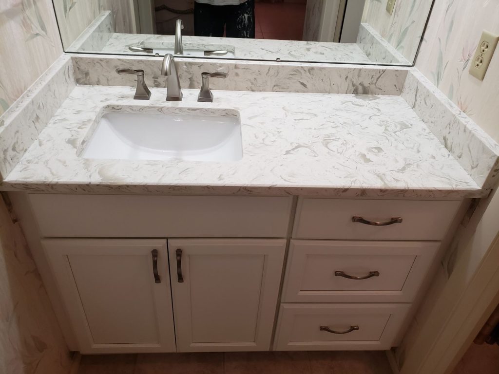 - Quartz, granite, and solid-surface vanity tops
