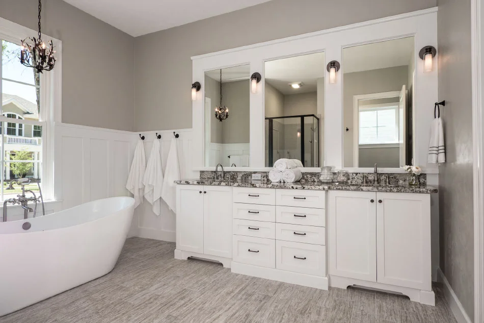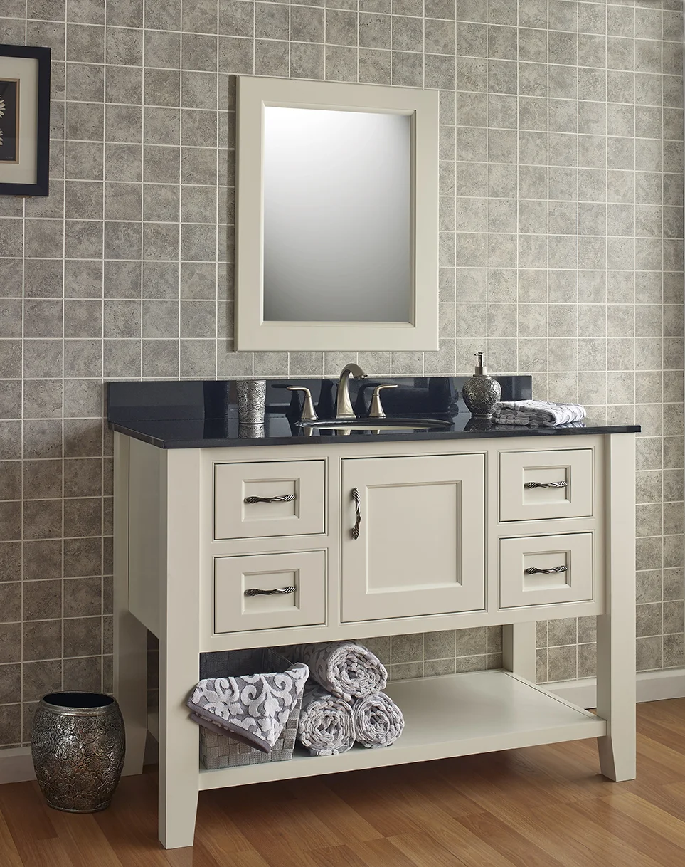 Our custom vanities are built to your exact specifications, available in thousands of styles, colors, and finishes. With our free design and quote service, you’ll see how your new vanity will look before committing. Orders are ready in as little as 4–12 weeks, and include features like soft-close doors, dovetail drawers, and hardwood construction.